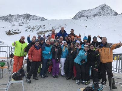 Stubaier Gletscher. 30 begeisterte Skifahren nutzten die Pisten auf dem schönsten Gletscher Österreichs um sich für die neue Skisaison ‚einzufahren‘. Der Spaß stand dabei wie so oft beim Skiclub im