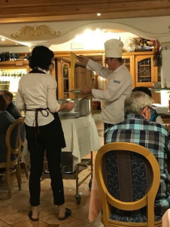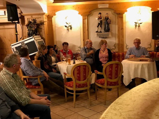 Ein Großteil der Teilnehmer aus dem Einrich, der Esterau, aus Diez und der weiteren Umgebung grüßen vom Mittagstreff auf der Mayrl-Alm in Obereggen